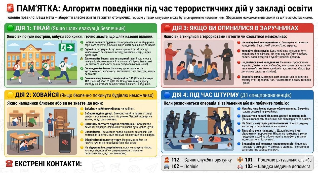 Алгоритм поведінки для дітей під час терористичних дій в закладі освіти